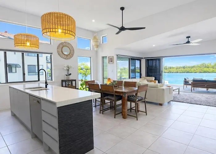 Azurea! Grand 7Br Riverfront Retreat Maroochydore villa is located 13 minutes' walk from the Sunshine Coast and invites guests to enjoy a terrace.